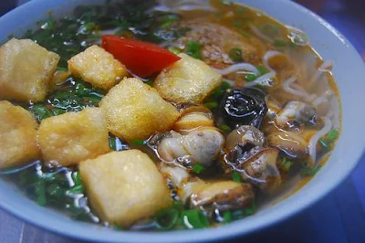 tasty. They are called ‘oc‘. Bun oc are boiled snails dipped in nuoc cham, placed in a bowl of rice vermicelli and snail consommé poured over. You can also get bun oc in many seafood restaurants. Oc ngoi