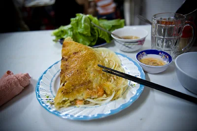 large crepe filled with goodies. The Vietnamese make it with rice flour